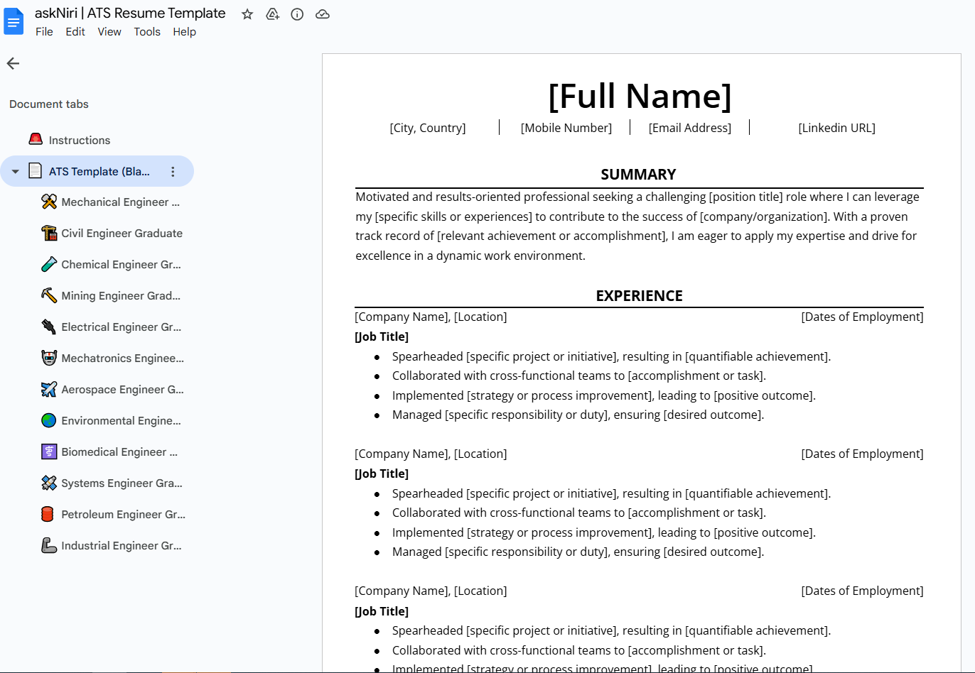 This ATS-friendly template is designed to make sure your application doesn’t get filtered out before a human ever reads it. Built with recruiter insights and tested against real hiring systems, it helps your skills stand out where it matters most.